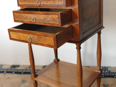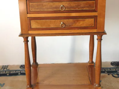 Девятнадцатый век, стиль Людовика XVI, прикроватная тумбочка из фруктового дерева с инкрустацией маркетри. Три ящика.