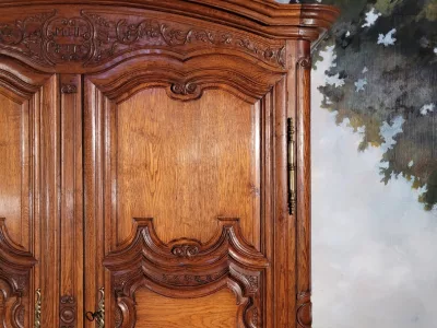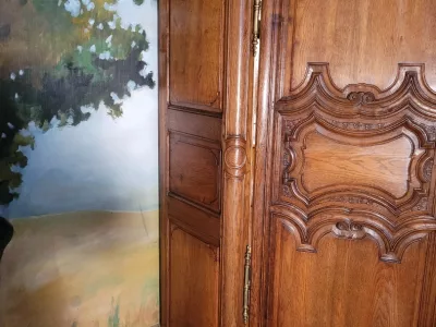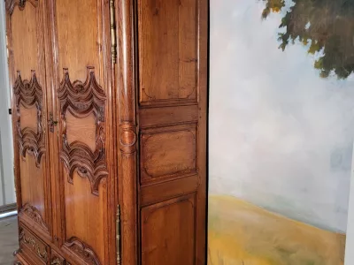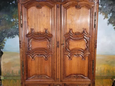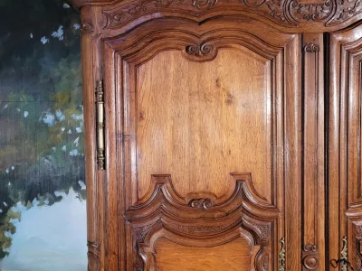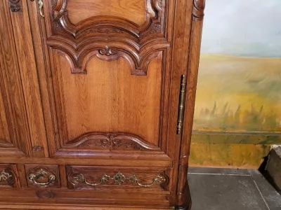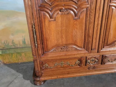 Шкаф Людовика XIV из дуба с богатой резьбой. Бронзовые штифты, замки-"скелеты". Все оригинальное. Исключительное. Бесплатная доставка по материковой Франции.