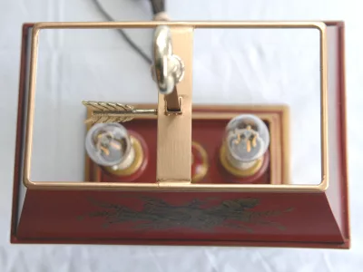 Лампа в стиле реставрации "бульотка" из красного и золотого металла с регулируемым абажуром. Я ухожу на пенсию после сорока лет деятельности и могу предложить скидку на все майские запасы.