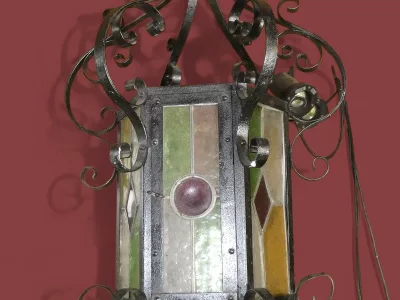 Великолепный фонарь из кованого железа и витражей времён Наполеона III. Изначально это был газовый светильник, но теперь его нужно подключить к электросети.