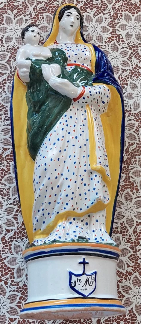 圣母玛利亚和婴儿耶稣的彩陶雕像