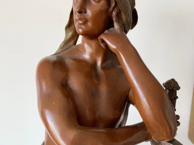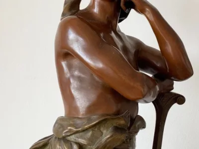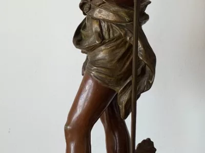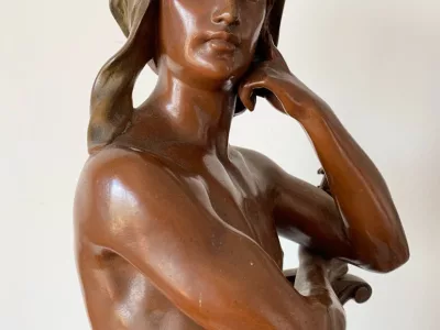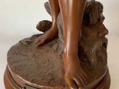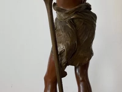 大卫青铜雕像,脚下是巨人歌利亚的头颅。署名 Henri Ple (1853-1922)。