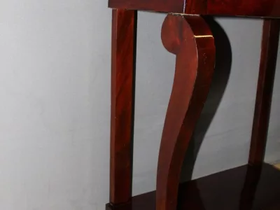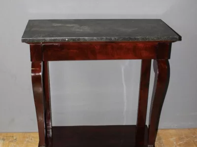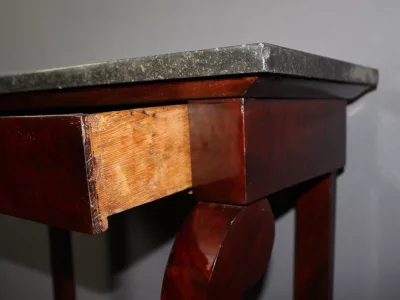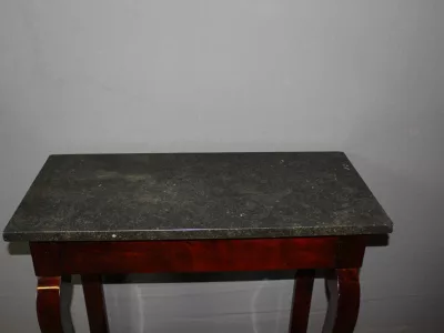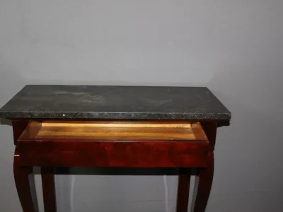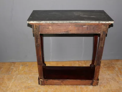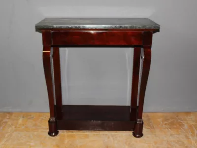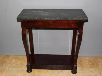 复辟时期的桃花心木控制台,带雕带抽屉和大理石台面。状况良好。