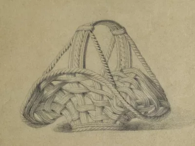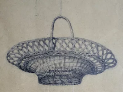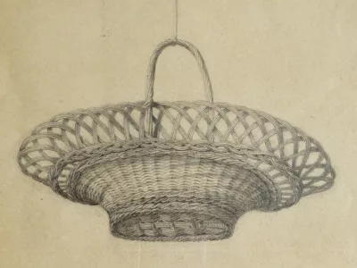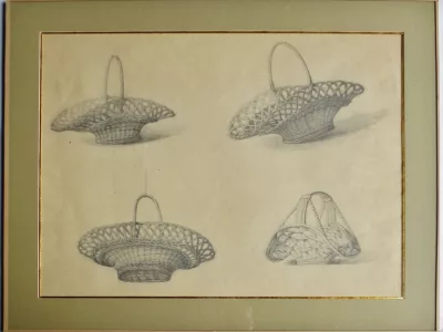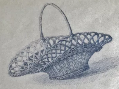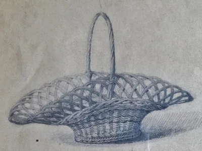 由匿名艺术家研究篮子。在玻璃下呈现但没有框架。 19世纪。尺寸43厘米x 55厘米