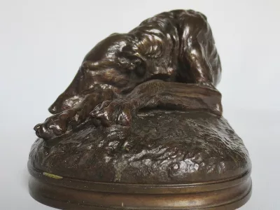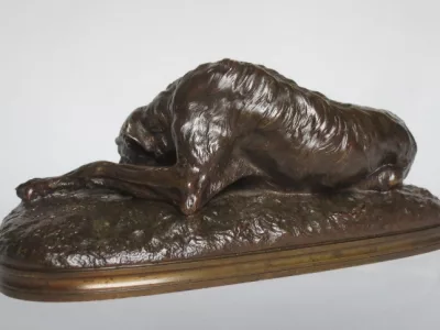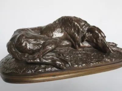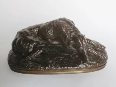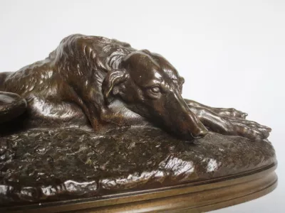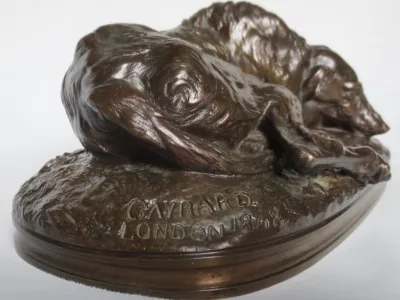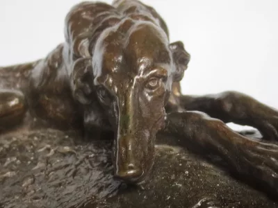青铜灵缇犬签署于基地盖拉德(Paul Joseph Raymond Gayrard,1807-1855),位于隆丹,日期为1848年。