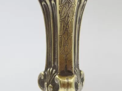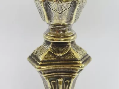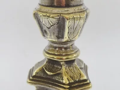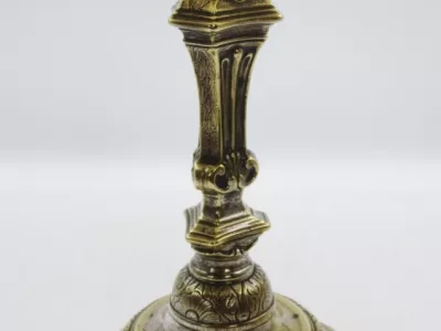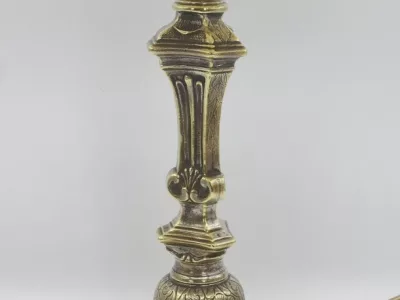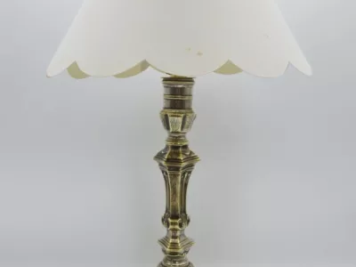 十八世纪的镀银青铜烛台,可改装成灯。银质部分磨损,青铜部分显露出来,呈现出非常迷人的光泽。电线是新的,但灯罩的状况并不完美。不含灯罩的高度:25.5 厘米,含灯罩的高度:39 厘米。