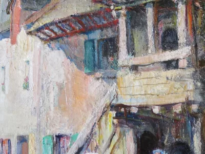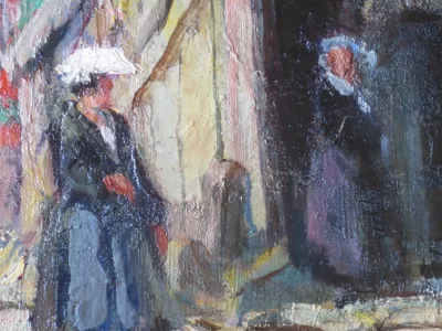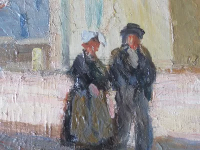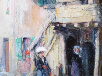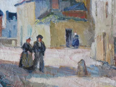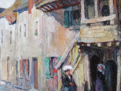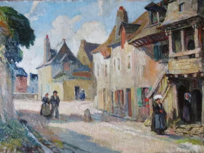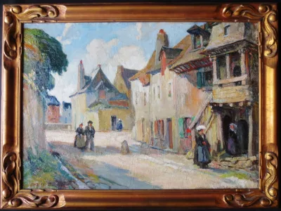 莫尔比昂省奥赖的街道画,署名者为阿尔伯特·费尔南德·雷诺(生于 1887 年)。画框:78 厘米 x 106 厘米,视野:64 厘米 x 91 厘米。