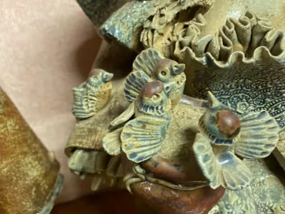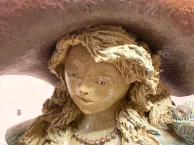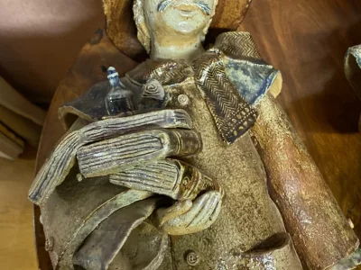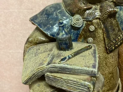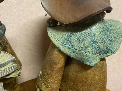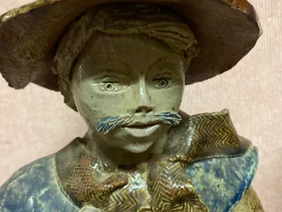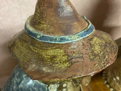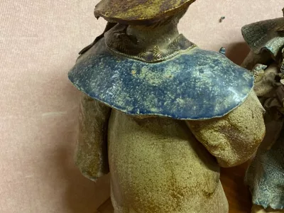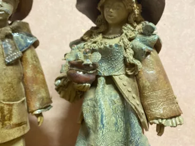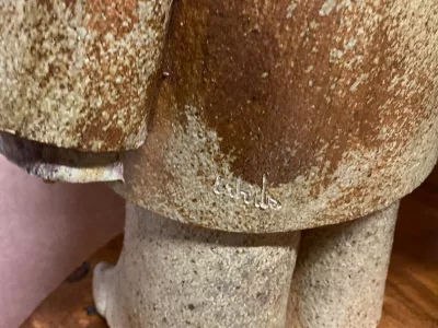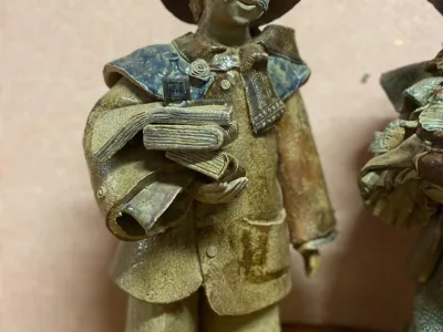 一对釉面砂岩小雕像,由 Dominique Dupont (Catido) 制作。状况极佳。