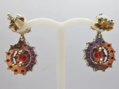 镀金石榴石耳环。纯度925印记(925/000)。金匠印记:BMA及猫头图案。二十世纪。