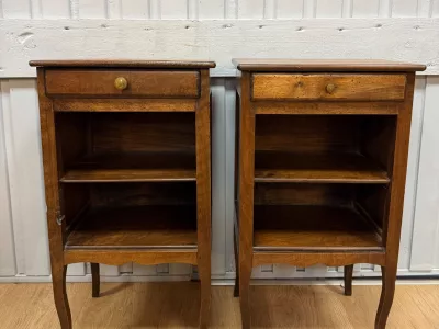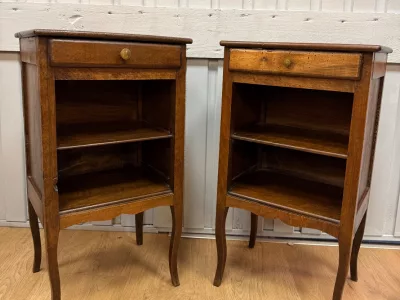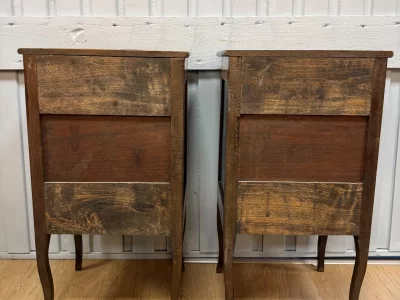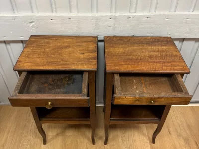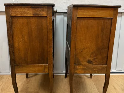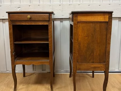 一对路易十五风格的胡桃木床头柜。现状出售。