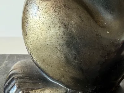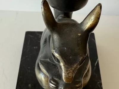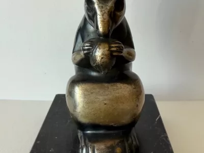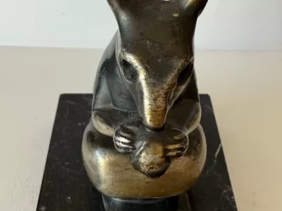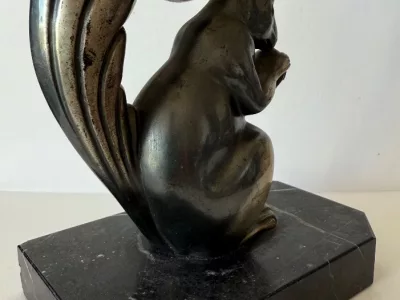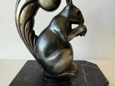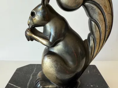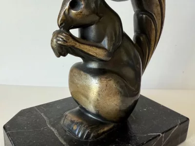 金属松鼠摆件,大理石底座,署名 FRANJOU(Hippolythe Moreau 的笔名)。装饰艺术时期。
