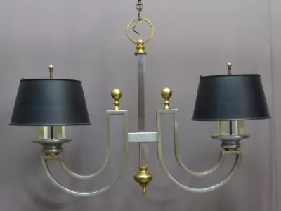 Lámpara de ocho lámparas de mediados de siglo XX en metal y latón con sus tonos originales en metal pintado.