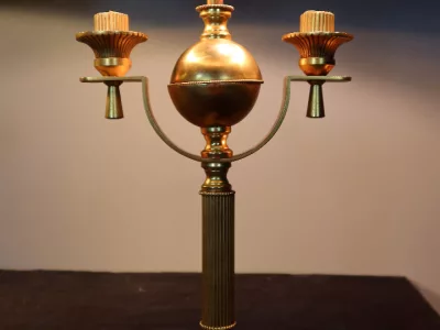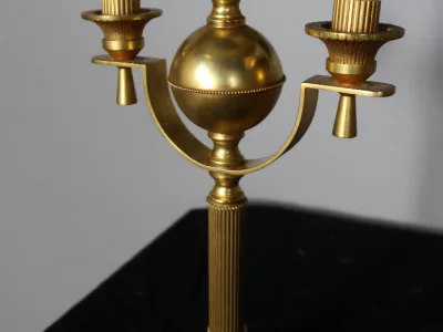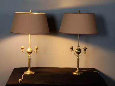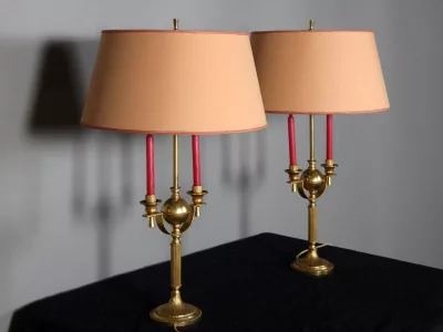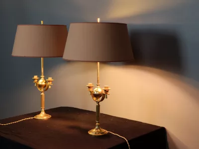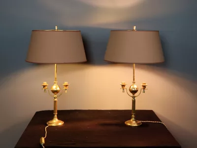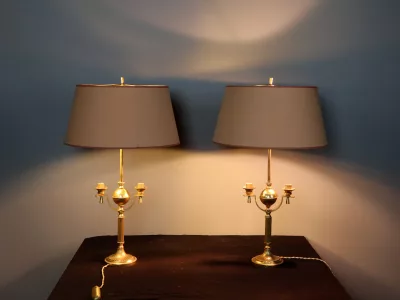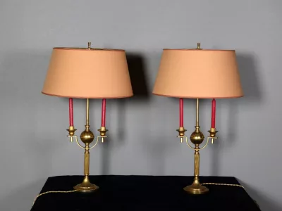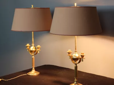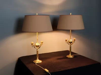 Pareja de lámparas del siglo XX, de estilo Neoclásico, en bronce. Nuevo cableado y pantallas. Póngase en contacto con nosotros para la entrega.