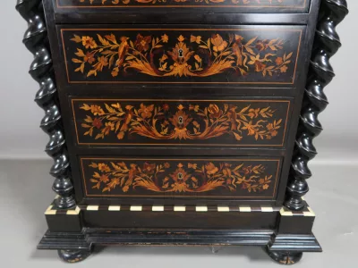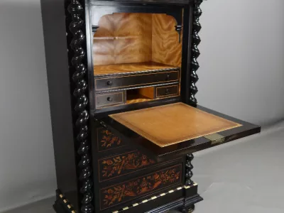 Secreter de época Napoleón III en madera negra y marquetería. Todo original. Contáctenos para la entrega.