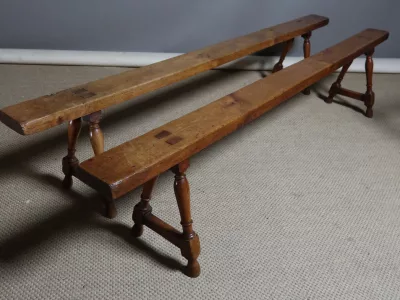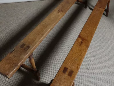 Pareja de bancos del siglo XIX en madera de cerezo. Alto 45 cm.