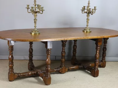 Mesa de siete patas de roble. Muy buen estado. Largo: 240 cm. Contáctenos para la entrega.