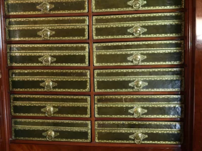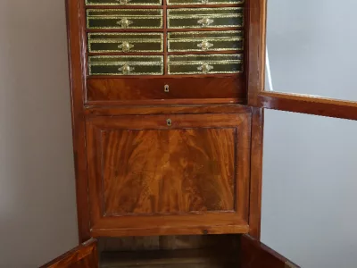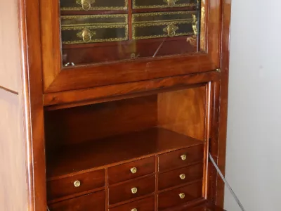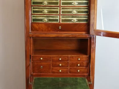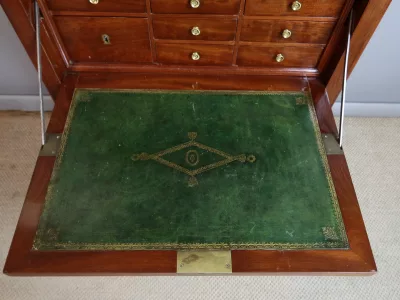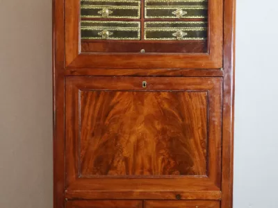 Secreter-cartonero de caoba de la época Luis XVI. Muy buen estado. Interior equipado con su superficie de escritura de cuero original. Doce cajas forradas en cuero. Más fotos disponibles a petición. Contáctenos para su entrega.