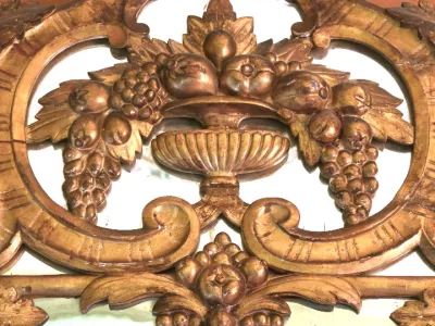 Espejo de finales del siglo XVIII y principios del XIX en madera dorada. Presenta algo de desgaste, pero se encuentra en buen estado general. Se pueden solicitar más fotos.