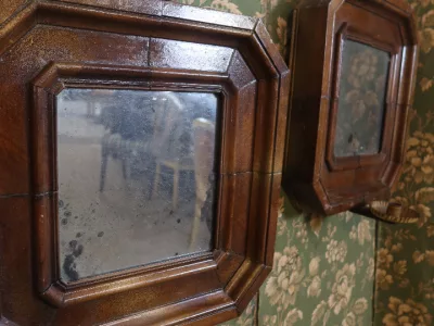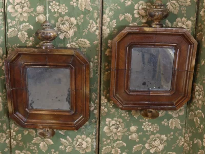 Pareja de espejos con marcos de madera e iluminación lateral. Probablemente de finales del siglo XIX. Contáctenos para su entrega.