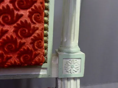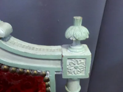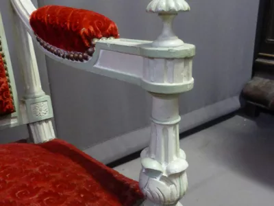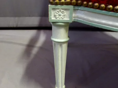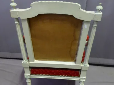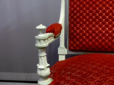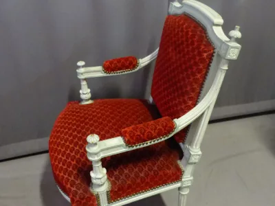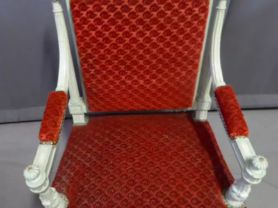 Par de sillones de estilo decimonónico C Louis XVI en madera pintada y tallada con tela roja.