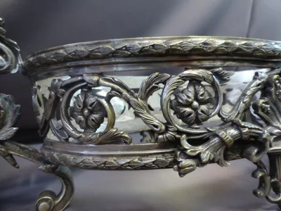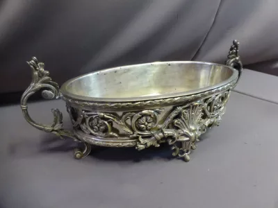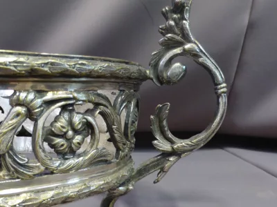 Jardinera estilo Rocaille en bronce plateado. Fondo extraíble